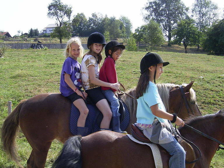 Das kostenlose Reiten ist für Kinder immer wieder ein Highlight - unsere braven Pferde und Ponys freuen sich immer auf ein bisschen Bewegung. Viermal die Woche werden bei uns die Pferde gesattelt und dann wird gemeinsam und geführt ausgeritten (nicht am Wochenende und Feiertag).